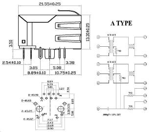 RJ 45 1x1 PORT With LED (Transformer) |
