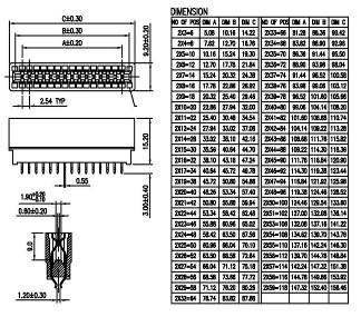 SLOT 夾板式6~118PIN PBT BRASS CARD EDEG Pitch:2.54 |